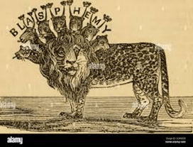 •DAN 7:3 … Four great beasts came up from the sea, diverse one from another. DAN 7:7 After this I saw…and behold a fourth beast, dreadful and terrible…and it had ten horns. DAN 7:8 I considered the horns, and, behold, there came up among them another little horn, before whom there were three of the first horns plucked up…in this horn…(was) a mouth speaking great things. DAN 7:24 And the ten horns out of this kingdom are ten kings that shall arise: •Major kingdoms in different eras of this world are represented by the beasts. The fourth kingdom or little horn is presently “speaking great things”. •John, looking forward to our time said:- • REV 13:1 … And I saw a beast rise up out of the sea, having seven heads and ten horns, and upon his horns ten crowns, and upon his heads the name of blasphemy…